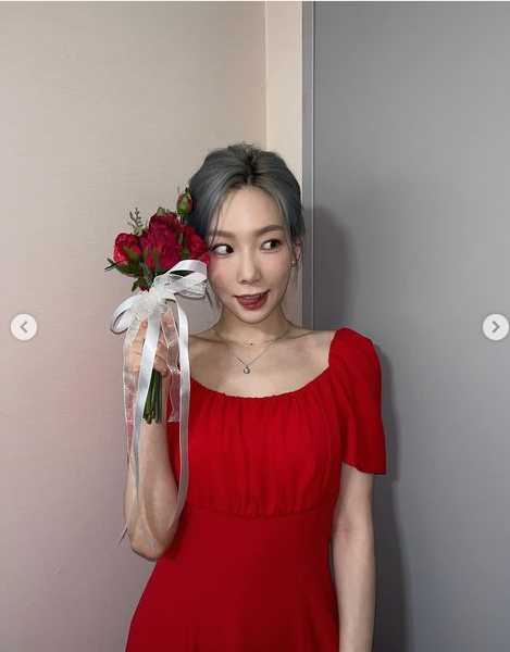 레드 컬러 원피스에 조이그라이슨 가방을 매치했어용