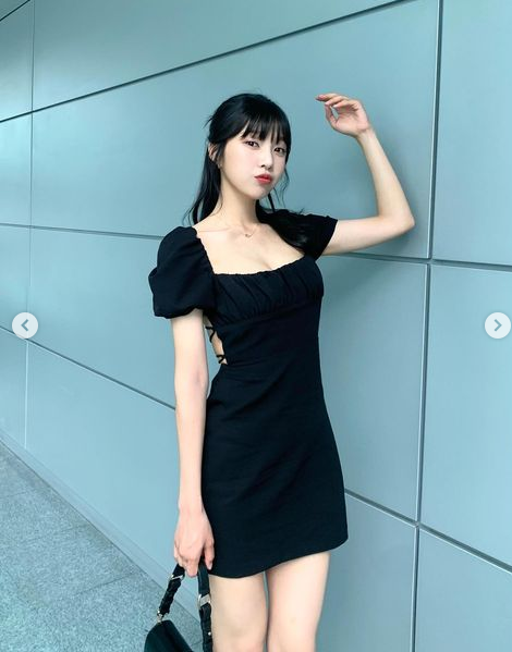시크한 올 블랙 패션을 선보인 효민 !