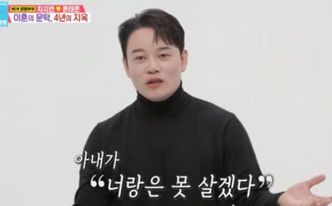 이런 상황 속에서 두 사람의 냉전은 4년간 지속됐고, 결국 차지연이 이혼을 요구하기도 했다는 사실도 공개했다. 차지연은 "이혼을 앞두고 '더블 캐스팅'이라는 오디션 프로그램에 저는 심사위원으로, 남편은 참가자로 출연했다. 그때 남편이 무대 위에 올라오는데 기분이 너무 이상했다. 사랑하는 감정, 미운 감정 다 들었는데 그때 굉장히 괴롭고 미안했다"라고 회상했다.