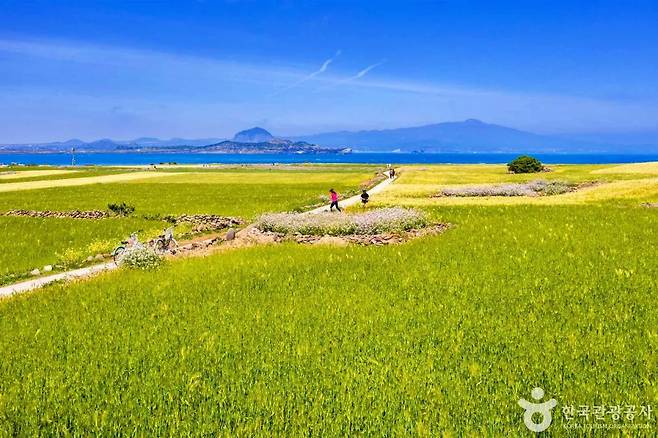 청보리밭을 따라 이어진 둘레길은 전체가 평탄한 흙길과 데크로 조성되어 있어 남녀노소 누구나 걷기 편하다. 둘레길을 걷다 보면, 바다 너머로 마라도가 보이는 조망 포인트도 곳곳에 있다. 바람을 따라 유유히 걷는 시간 동안 가파도의 속도에 자연스럽게 동화된다.