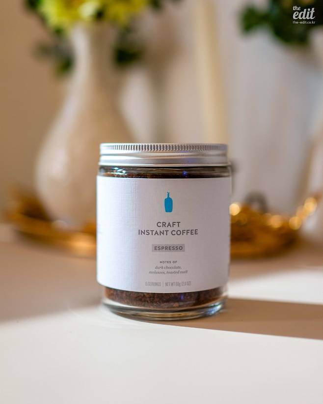 블루보틀커피는 현재 세계 최대의 스페셜티커피 업체이다. 참고로 현재 블루보틀 전세계의 매장 규모는 100개이고, 한국에서 합작 회사와 함께 성수, 강남, 삼청, 명동, 제주와 같은 상징적인 지역에 화제의 매장을 운영하고 있다. 블루보틀은 한 종류의 인스턴트 커피를 선보이고 있다. 가격은 60g에 3만 5,000원(한 잔 분량 4g, 2,400원). 제품의 패키징은 나무사이로와 비슷한 병모양이지만 사이즈가 크다. 커피 파우더의 제형은 카누와 비슷하고 물에 녹는 속도가 매우 빠르다. 인스턴트 커피중에서 가장 잘 녹는 느낌이었다.