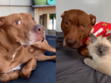 '핏불이 고양이한테 자라면 생기는 일' 생긴 건 강아지인데 행동은 고양이 그 자체