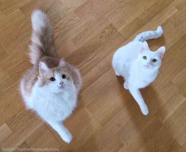 설명에 따르면 녀석은 보호자가 간식을 줄 때마다 앞발을 들어 올리는 습관이 있었다는데요. 그 모습이 귀여워 보호자가 간식을 하나씩 더 주자, 고양이는 앞발을 들어 올리는 행동을 더 반복했다고 합니다.
