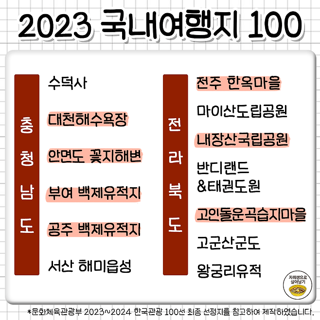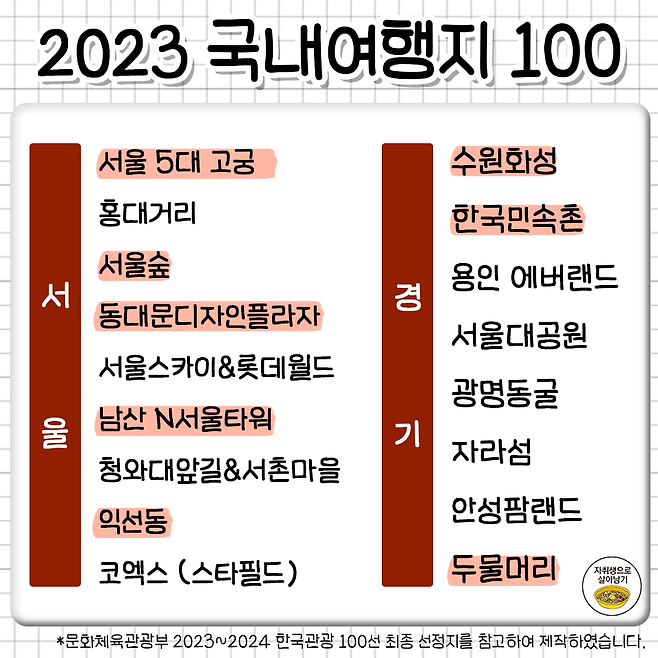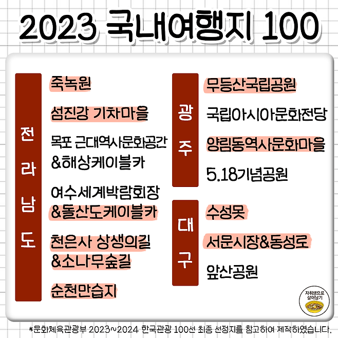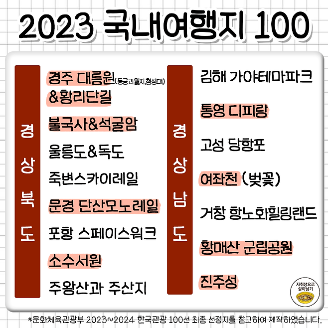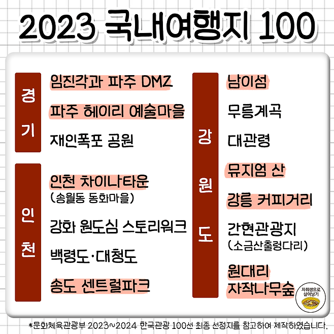 죽기 전에 꼭 가봐야 한다는 국내 여행 명소 100곳
