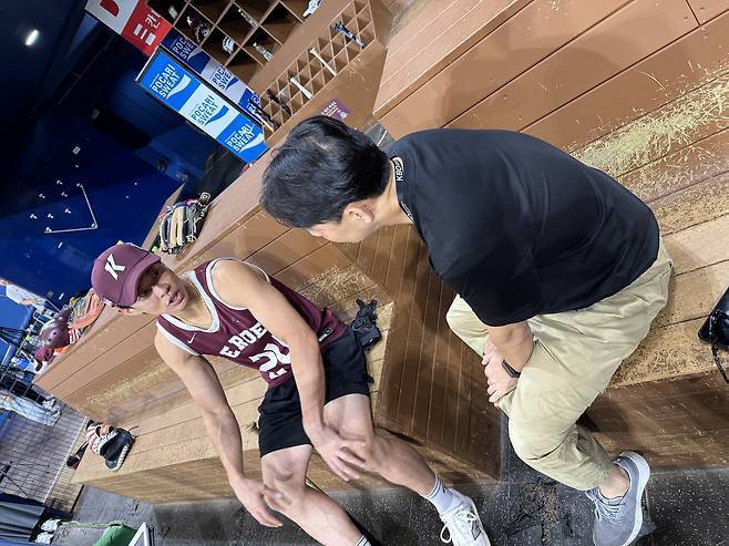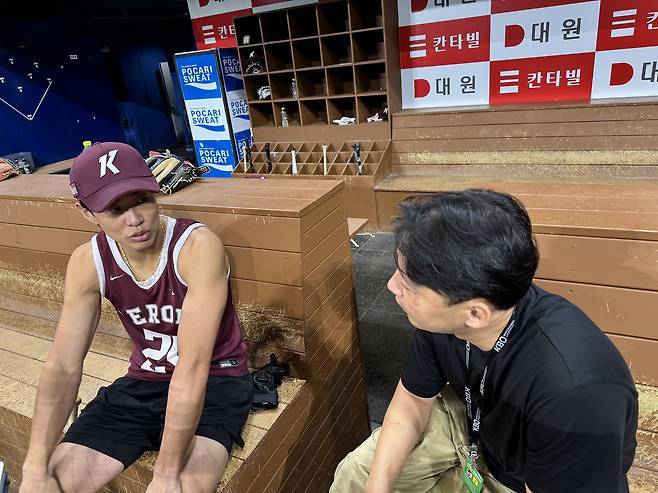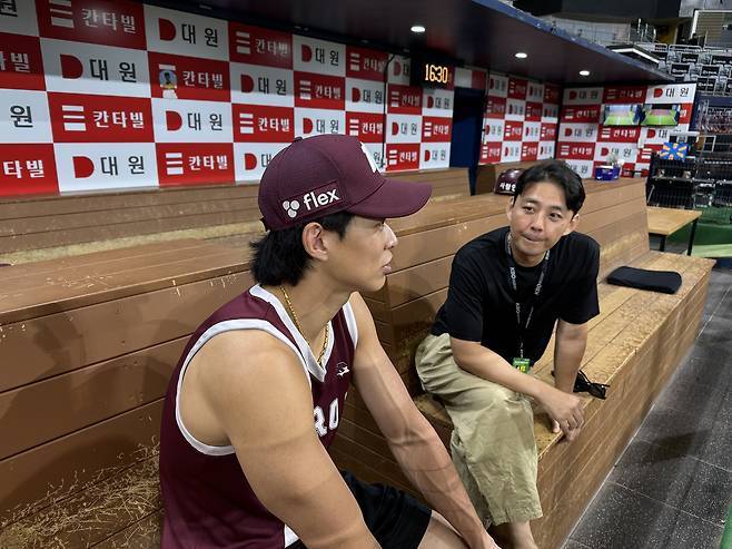 송성문 선수와 지난 8월 30일, 금요일 롯데와 키움의 경기 전 만나서 이야기를 나눴습니다.