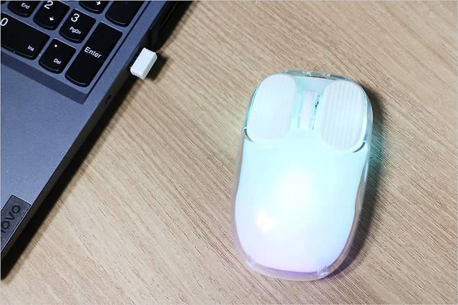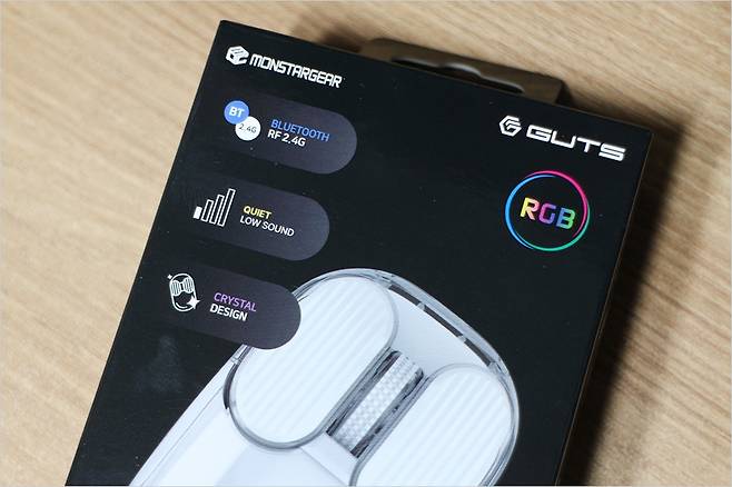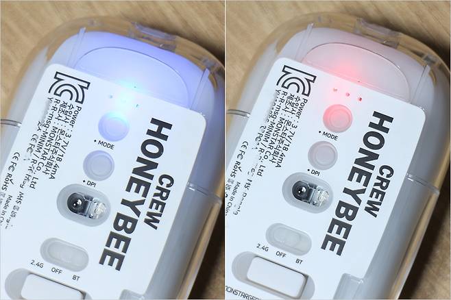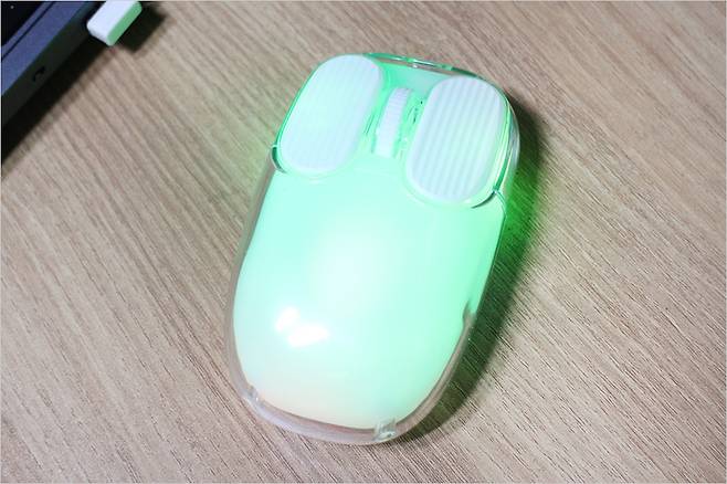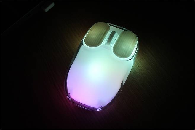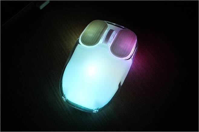 그리고 저소음 마우스 전체를 덮는 RGB 라이팅도 나름 감성적인 느낌인데요. 어두운 곳에서도 야간 공간에서도 사용이 가능한 느낌입니다. 이처럼 몬스타 가츠 크루 허니비는 적당한 가격과 높은 DPI 지원 그리고 RGB 지원 및 2.4G 초고속 연결, 블루투스 2대 지원으로 다양한 디바이스에서 무난하게 사용할 수 있는 제품이 아닐까 싶습니다. 고사양 게이밍 디바이스보다는 사무용 데스크탑이나 노트북 환경에 더욱 잘 맞다고 생각됩니다.