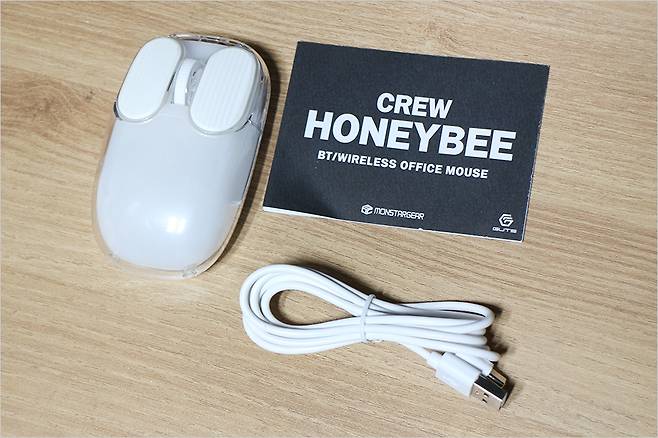 우선 그립감은 손안에 감싸는 느낌이라 땀이 묻는 러버 재질이 아니라서 마음에 들었습니다. 아무래도 사무용은 오래 사용하는 만큼 이러한 재질이 좋은 것 같습니다. 몬스타 가츠 크루 허니비 저소음 마우스 크기는 105mm x 62mm x 34.8mm 로 전체적으로 특화된 디자인보다는 안정적이고 보편적인 디자인이라고 할 수 있습니다.