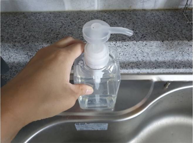 먼저 세제통이나 샴푸통의 바닥을 깨끗하게 닦아주세요.