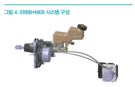 또한 회생제동 효율이 높고, MEB 와 항상 같이 장착되어 전기적, 기구적 리던던시가 확보된다. ERBB 자체에서 회생제동이 가능하기 때문에 별도의 추가 적인 회생제동용 제동 부품을 사용할 필요가 없다. 또한 플 라스틱 하우징 적용으로 중량도 알루미늄, 스틸 하우징 대비 가볍다.