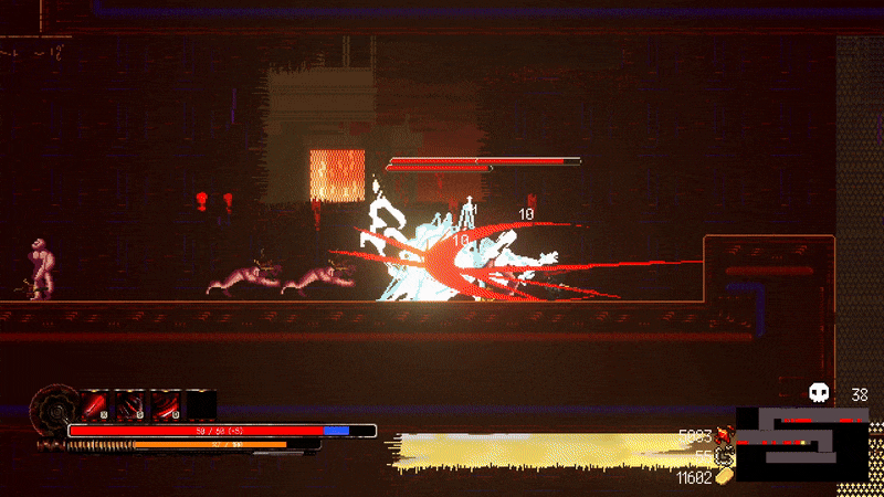 헬펑크는 스플래터 장르를 주로 차용하며, 구로사와 아키라 감독의 액션 영화처럼 피가 과장되게 튀는 연출을 통해 “적을 처치하는 재미와 도파민을 플레이어에게 전달한다”고 송 아티스트는 강조했다. 살점과 시체가 분리되는 디테일한 묘사에도 큰 노력을 기울였다고 밝혔다.