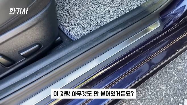 그리고 저는 너무나 화가 나는 단점이 여기 문 딱 열었을 때 칸이 있잖아요. 여기에 보통 아반떼만 아반떼 소나타만 소나타 이렇게 레터링이 들어가 있잖아요. 이 차랑 아무것도 안 붙어있거든요. 전 너무 짜증나 가지고 제가 스팅어 레터링 사가지고 붙여놨거든요. 이거 몇천원도 안하는데 이것조차 원가절감해요.