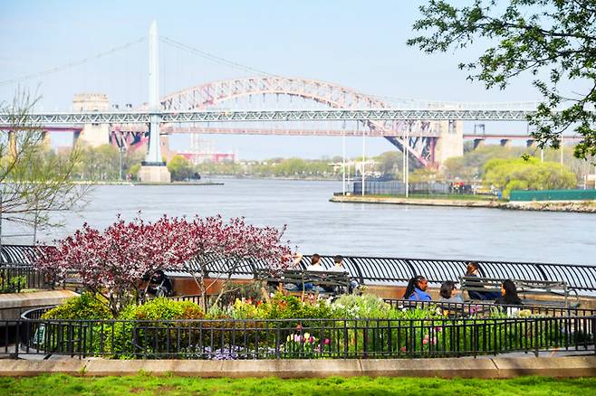 여기에서는 이스트강과 맨해튼 스카이라인의 탁 트인 전망을 감상하면서 산책하기 좋습니다.