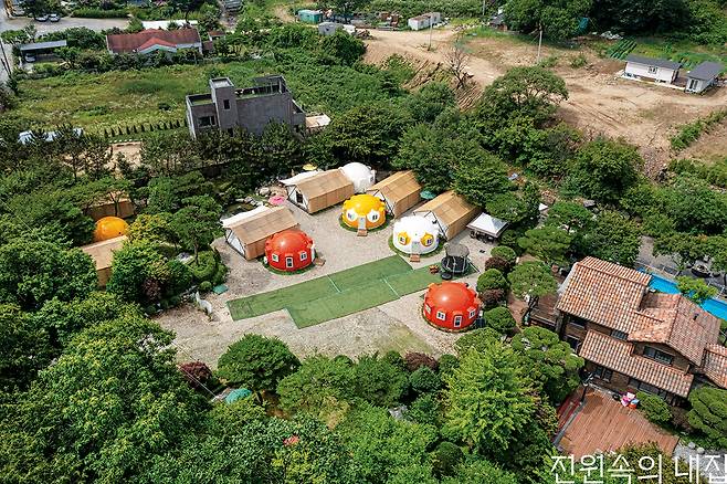 간편한 운반과 조립, 손쉬운 관리, 뛰어난 열효율과 내구성을 갖춰 대안형 주택으로 각광받는 무골조 구조물 옴니돔 하우스. 이런 옴니돔 하우스가 알록달록한 글램핑장으로 탄생했다.