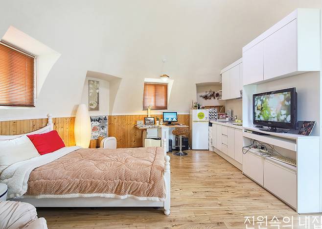 기본 모델은 5평형, 6평형, 9평형으로 나뉘어져 있다. 이보다 더 큰 모델을 원할 시에는 원하는 사양대로 무한 확장 연결이 가능하다. 내부 인테리어는 화장실부터 복층공사까지 건축주의 취향대로 선택할 수 있다. 화장실과 주방을 내부에 시공하거나 외부에 부착할 수 있고, 2~3동을 연결해 확장할 때는 연결 통로 외부에 시공할 수도 있다. 옴니돔의 외관도 페인트나 스티커로 다양한 디자인 연출이 가능하다. 가격은 내부 인테리어와 운반, 조립 비용을 제외하고 옴니동 1동당 1,090만원부터 1,690만원 사이에 형성돼 있다. 간단한 조립과 관리, 게다가 특별한 전원 생활을 계획 중인 건축주라면 차세대 구조물 옴니돔 하우스에 주목해보자.