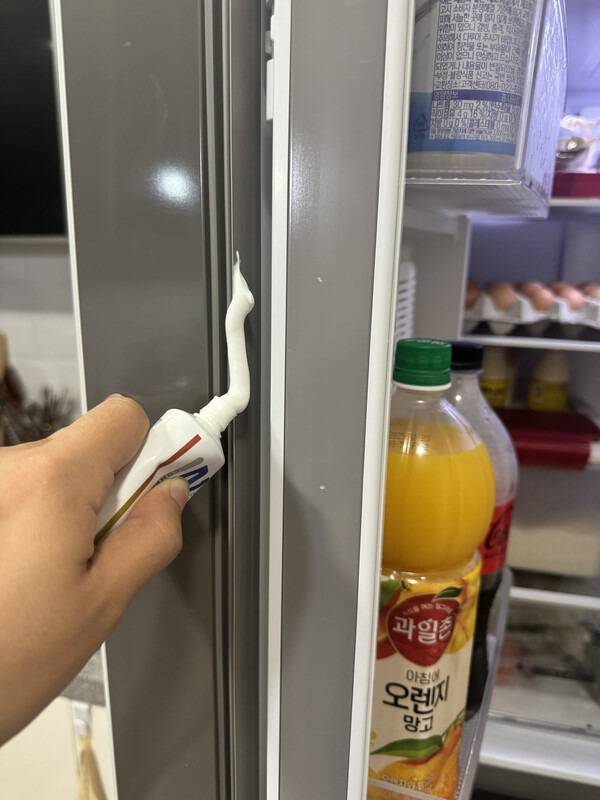 치약을 냉장고에 발라보세요. 눈에 안보이는 곰팡이가 싹 씻겨 나갑니다.