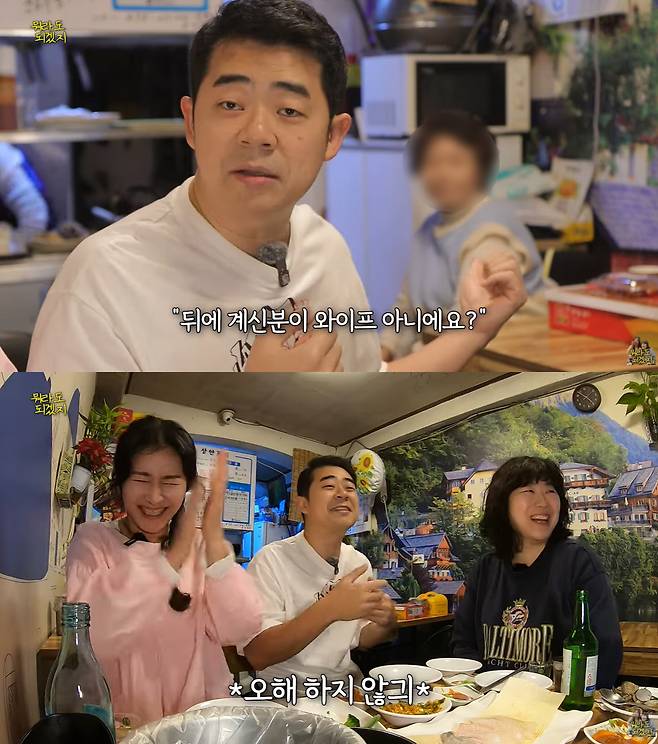 이어 그는 "혹시라도 이 화면에서 보시는 분들이 '뒤에 계신분이 아내 아니에요?'라고 오해 하실 것 같다. 그래서 말씀을 드려야 될 것 같다"라고 전해 웃음을 자아냈다. 화면에 보이는 여성이 아내가 아닌 사장님 가족이라는 것.