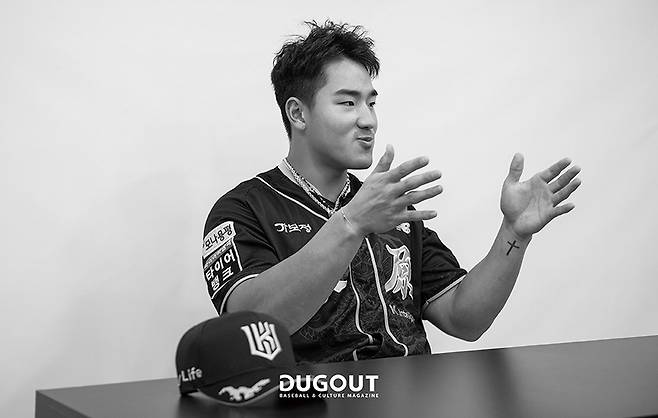 제가 아직 다른 투수에게 조언을 해 줄 만한 선수는 아니어서요. 영탁이는 제 중학교 후배니까, 타자로서 영탁이 공이 어떻게 보이는지 말해 주는 게 도움이 되지 않을까 싶었어요. 같은 팀에 친구도 (박)영현이밖에 없어서 서로 놀리면 놀렸지, 야구를 어떻게 하라고 조언을 주고받지는 않고요.