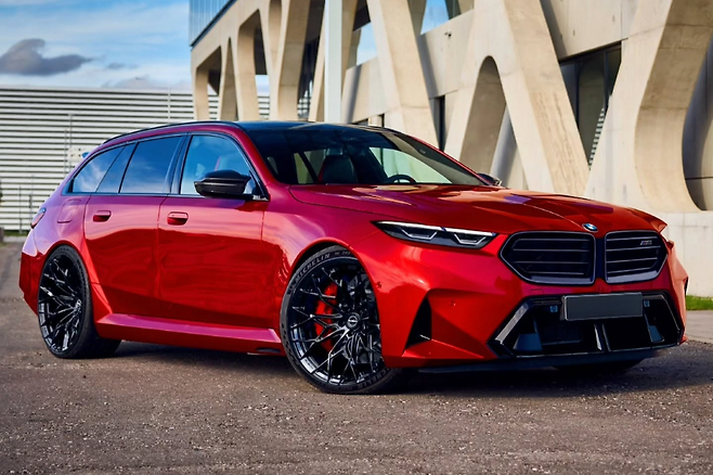 성공적인 세단 디자인에 이어 BMW M5 투어링 모델도 공개됐다. 붉은색 또는 검은색 고성능 바바리안 왜건에 슬림한 LED 헤드라이트, 수평 슬랫이 있는 넓은 그릴뿐만 아니라 더 큰 애프터마켓 휠도 장착했다. 첫 번째 세트는 멀티스포크 설정의 트렌디한 Y-스포크 디자인이며, 두 번째는 다섯 개의 암만 있는 Y-스포크 디자인이다. 또한 작가는 휠 뒤에 크림슨 또는 블루 브레이크 캘리퍼를 배치했다.