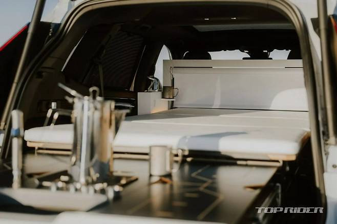 또한 접이식 싱크대가 있어 기본적인 조리도 가능하다. 접이식 사이드 테이블은 상황에 맞춰 사이즈 조절이 가능하다. 고무 플로어 매트와 방습 수납 공간 등이 제공된다. 외관에는 전용 루프랙과 툴레 자전거랙이 적용됐다. 배터리로 구동되는 캠핑 모드를 지원한다.