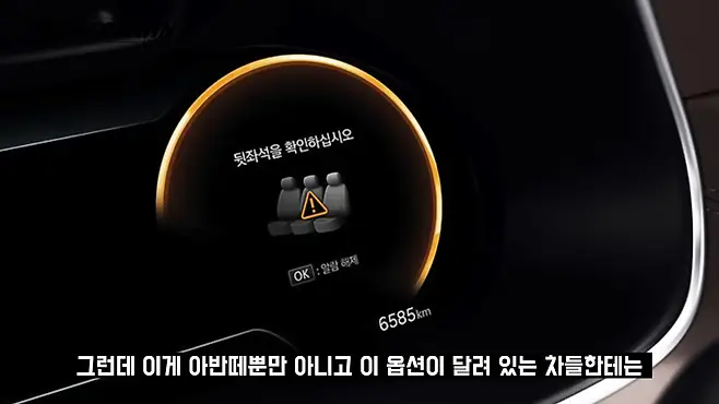 그리고 애프터 블로우 작업을 했는데, 이게 안전 옵션 중에서 후석 승객 알림 안전 옵션이 있어요. 그런데 이게 아반떼뿐만 아니고, 이 옵션이 달려 있는 차들은 이 기능이 켜져 있으면 시동이 꺼진 상태에서도 애프터 블로우 송풍을 센서가 인식해서 계속 빵빵거리는 일이 많다고 후기를 많이 봤거든요. 이건 진짜 민폐인데, 애프터 블로우 작업을 하시는 분들은 꼭 후석 승객 알림 끄고 다니시는 걸 추천해 드립니다.