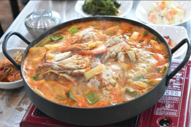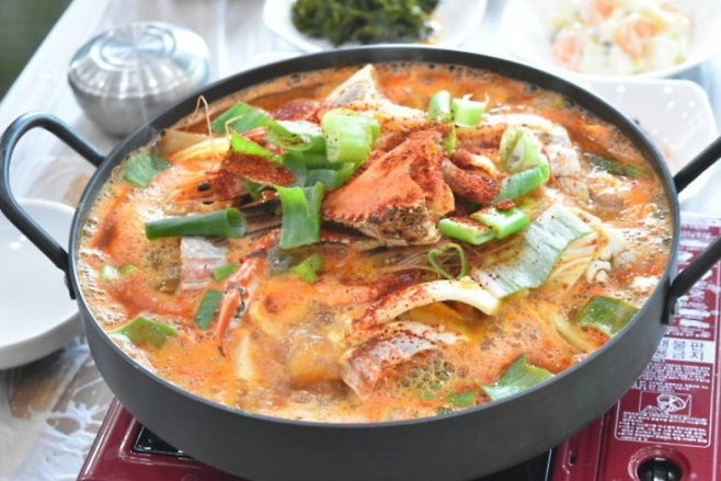 ‘바다산성’은 충청남도 태안군 안면읍 방포1길에 위치한 바닷가 근처 식당이다. 이름부터 바다와 연결된 이곳은 전통 음식인 게국지와 제철 갑오징어볶음으로 유명세를 탔다. 특히 게국지는 일반 김치찌개와 다른 깊은 감칠맛이 특징이다. 게장을 담그고 남은 국물에 시래기와 묵은지를 넣고, 생물 꽃게나 바지락을 함께 끓여 바다의 풍미를 고스란히 살린다.