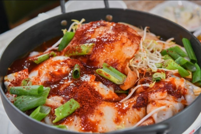 함께 제공되는 ‘갑오징어볶음’은 봄철에 가장 살이 통통하게 오른 갑오징어를 사용한다. 살짝 매콤하면서도 단맛이 느껴지는 양념에 볶아낸 갑오징어는 식감이 부드럽고 쫄깃하다. 채소는 최소한으로 줄이고, 오징어 본연의 맛을 살리는 데 집중했다. 방송에서 요리 장면이 소개되며 시청자들 사이에서 큰 화제를 모았다.