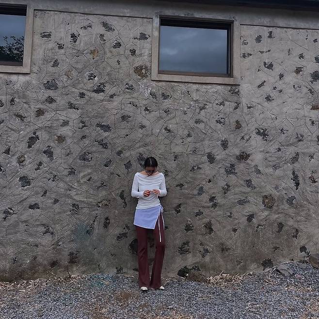 황보가 제주에서 선보인 스타일이 또 한 번 감각적인 패션 센스를 입증했다. 그녀는 최근 자신의 인스타그램에 “#hwangboinjeju #지금아니면언제”라는 짧은 멘트와 함께 패션 화보 같은 한 장의 사진을 공개했다. 독특한 외벽을 배경으로 한 이 사진 속 황보는 간결하면서도 디테일이 살아 있는 룩으로 시선을 사로잡는다.