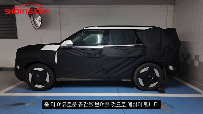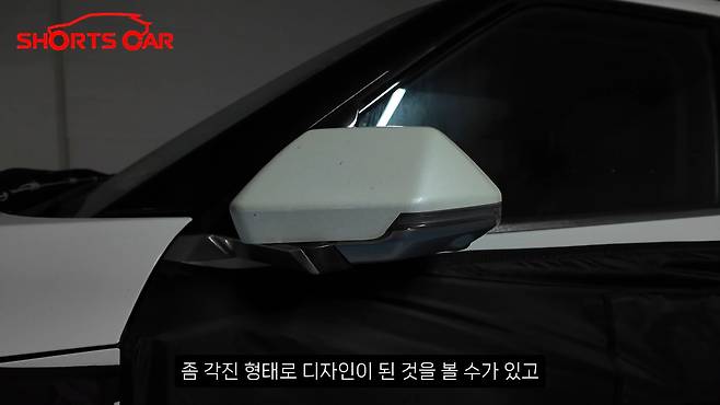사이드 미러는 차량 전체의 각진 디자인 콘셉트에 맞춰 각진 형태로 디자인되었으며, 하단은 반광 실버 투톤으로 마감되었다. 360도 카메라를 위한 측면 카메라도 확인된다.