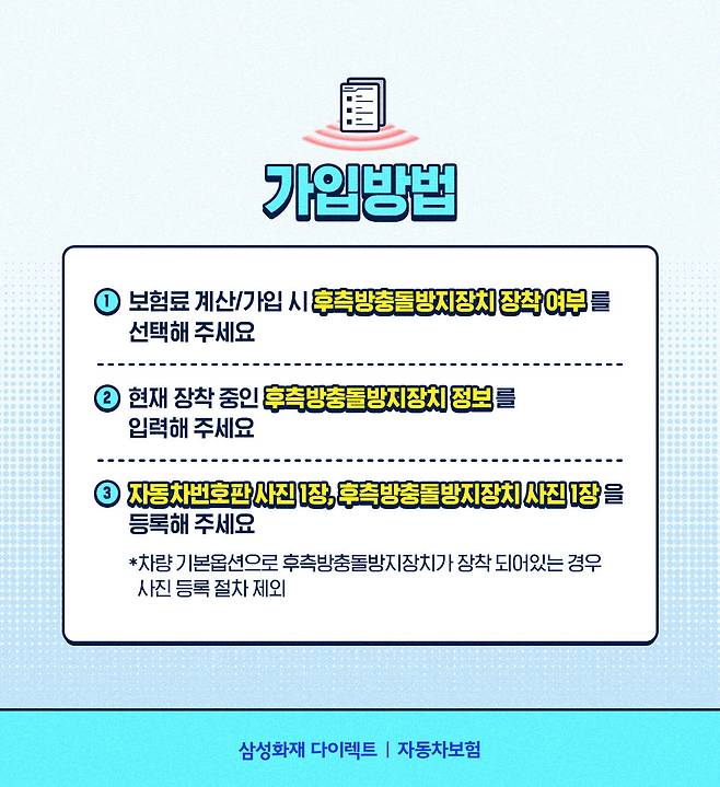 3. 후측방충돌방지장치 장착 차량 할인 특약 가입방법