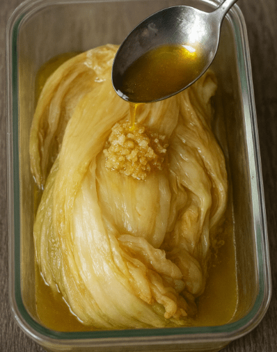 이때 설탕은 절대 많이 넣지 말고, 0.3~0.5티스푼 정도의 아주 적은 양만 사용하는 것이 포인트이다. 김치의 숙성 정도에 따라 설탕의 양은 조금씩 조절해도 좋고, 설탕 대신 매실청을 사용하는 것도 가능하다. 다만 이 경우에는 단맛이 더 강하게 느껴질 수 있어 양 조절이 필수이다.