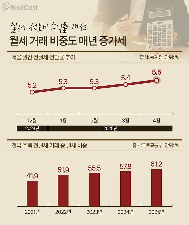 전월세 전환율 상승…서울 월세 비중 60% 넘어서