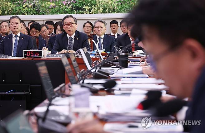 (서울=연합뉴스) 신준희 기자 = 24일 국회에서 열린 외교통일위원회 국정감사에서 조태열 외교부 장관이 의원 질의에 답하고 있다. 2024.10.24