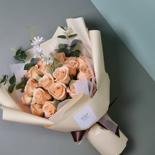 미다운 플라워의 경력 10년 이상의 플로리스트가 직접 기획한 비누 장미 꽃다발은 비누라는 이름이 무색할 정도로 아름다운 색상을 자랑하고 있습니다. 생화처럼 이쁘지만 시들지 않는 비누장미 꽃다발이기에 직사광선이나 고습도의 환경적인 영향이 미치지 않는다면 최대 2년까지 아름다움을 자랑하고 있어 대단히 유지 기간이 길다고 할 수 있습니다.