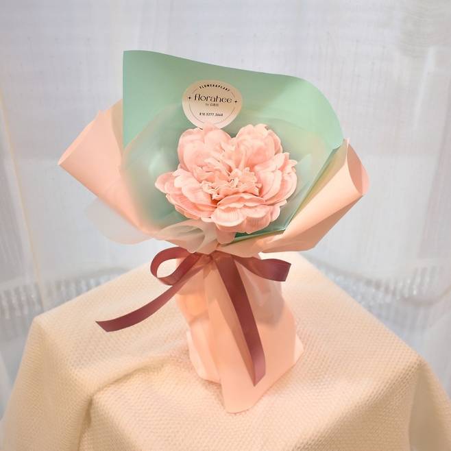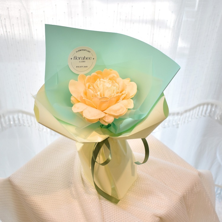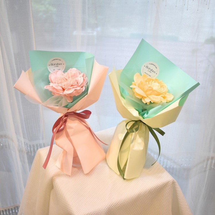 꽃다발을 선물하기 부담스럽거나 메인 선물 옆에 곁들이는 선물로 전해주고 싶을 때 큰 한 송이의 작약을 추천드립니다. 비누로 만들어진 작약 한 송이 꽃다발로 수줍은 살구와 베이비핑크 두 가지 파스텔 톤 색상이 마음을 두근거리게 만드는 봄이 온 듯한 느낌을 줍니다.