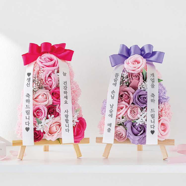 웨딩홀에서만 보던 화환을 쁘띠 사이즈로 대폭 축소시킨 뷰티풀 데코 센스의 센스 있는 인테리어 소품 미니 화환입니다. 특별한 날 감사와 사랑의 마음을 가득 담아 선물용으로 전달하기에 제격인 상품입니다. 원하는 맞춤 문구를 넣어 인쇄가 가능하기 때문에 의미 있는 선물과 감동을 선사할 수 있고 전용 박스 캐리어에 소중하게 포장을 해 발송하므로 제품의 손상이 없으며 상품 이동이 편리합니다.