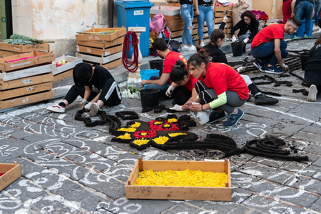 매년 5월이 되면, 이탈리아 곳곳은 꽃향기로 가득 찬다. 이탈리아를 대표하는 꽃 축제인 인피오라타 플라워 카펫 축제를 열기 때문이다. 이름 그대로 인피오라타 플라워 카펫 축제는 바닥에 카펫을 깔아두듯 거리를 꽃잎으로 장식하는 행사다. 노토(Noto), 겐자노(Genzano), 스펠로(Spello)를 비롯한 이탈리아 각 지방 여러 도시에서 개최하나 가장 큰 규모로 시행하는 곳은 시칠리아에 위치한 노토다. 축제의 역사는 17세기 성 베드로와 성 바오로 대축일로 거슬러 올라간다. 당시 바실리카의 수석 플로리스트 베네데토 드레이(Benedetto Drei)는 모자이크 형식으로 성당을 장식하기 위해 꽃을 사용했다. 이후 지역 주민들 사이 이 장식이 인기를 끌며 해마다 봄이 오면 노토 거리는 꽃으로 장식된다.