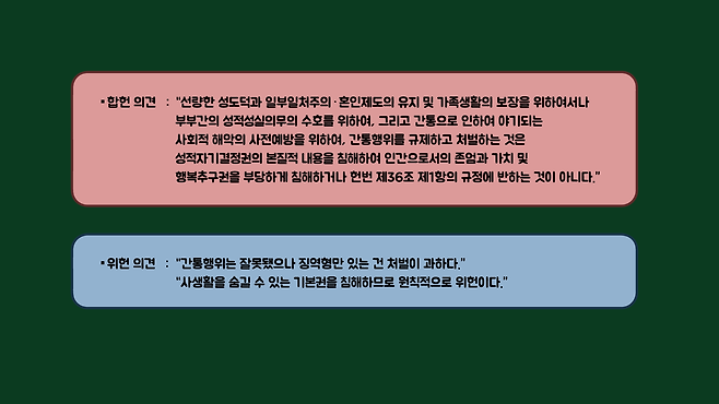 법은 사회의 규범과 가치를 반영하여 인간의 행동을 규제하고자 만들어진 규칙입니다. 분명 한계가 존재하기에 다양한 의견이 존재하는 것이고, 이에 따라 위헌 논란이 끊이질 않았습니다.