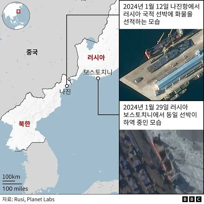 영국 RUSI 연구팀과 각국 정보기관, 오픈소스 위성 자료에 따르면 한반도와 러시아 간에는 실제 컨테이너 기반 대규모 무기·탄약 수송이 이루어지고 있다.