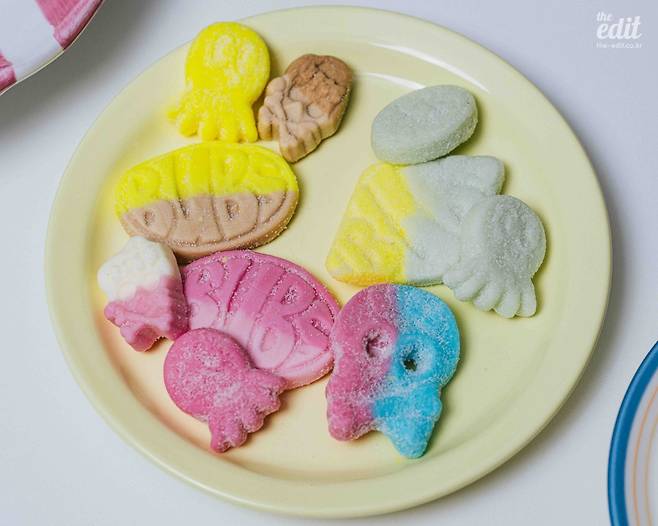 젤리와 마시멜로를 섞은 듯한 묘한 식감으로 유행을 탄 건데, 첫입을 먹었을 때의 인상은… 쫀쫀한 지우개를 씹는 느낌? 마시멜로보다는 오히려 캐러멜과 껌을 섞은 식감이랄까. 이 식감, 너무 익숙한데… 기억을 더듬다가 그 익숙함의 정체를 발굴했다. 아! 바이오 캔디!