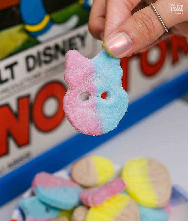 문어 시리즈는 어디선가 먹어본 적 있는 새콤한 과일 젤리 맛. 생긴 건 귀엽지만 맛에 특색은 없다. 옅은 민트색 젤리들은 소다 맛이다. 입안에 넣으면 옅은 탄산감이 보글보글 느껴져서 신기하다. 노란색과 갈색이 반반 섞인 타원형의 젤리는 초코 바나나맛. 초코 바나나맛 젤리는 처음 먹어보는데, 인공적인 바나나 향과 캐러멜을 태운 듯한 맛이 특이하다. 역시 젤리라기엔 초코 캐러멜에 가까운 맛과 식감이다.