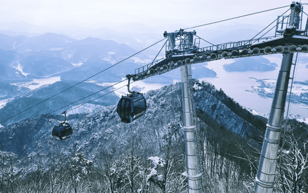 겨울철 설경이 아름다운 제천 청풍호반은 마치 스위스의 알프스를 떠올리게 합니다. 특히 청풍호반 케이블카를 타고 올라가면 호수와 산맥이 어우러진 장관이 펼쳐지는데요. 눈 덮인 산과 푸른 호수가 만들어내는 조화는 마치 유럽의 자연 속에 있는 듯한 착각을 일으킵니다.