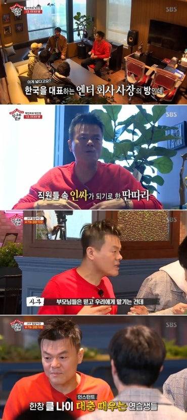 박진영은 “근데 직원들만 먹는 게 아니라 연예인과 연습생들이 여기 와서 먹는다”며 “연습생들의 경우 부모님들이 우리한테 믿고 맡기는 건데 성장기에 인스턴트 음식을 먹는 게 너무 마음 아프고 죄책감으로 다가왔다”고 말했습니다.