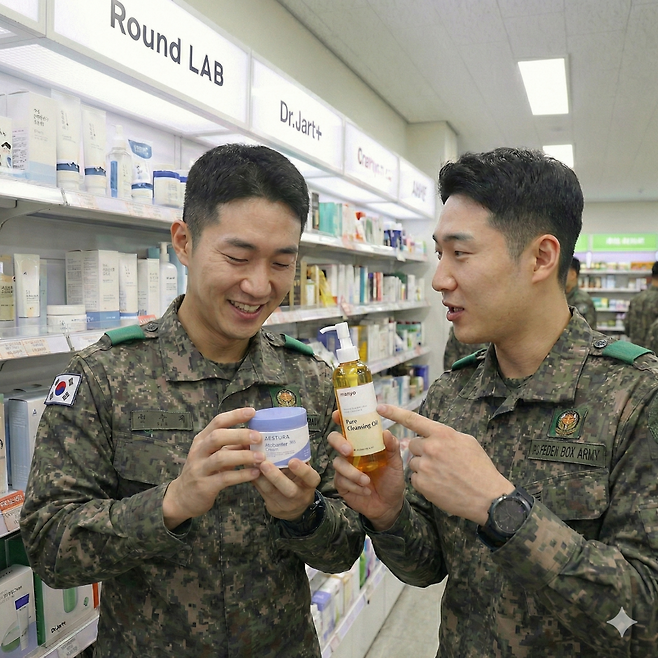 라운드랩 독도토너, 아이소이 잡티세럼, 아누아 어성초 토너도 꾸준히 찾는 스테디셀러다. 나 때 군대에서 스킨케어란 개념 자체가 없었던 것을 생각하면 격세지감이다. 부모님 선물용으로도 인기인 고급 크림 세트는 포장도 고급스러워 면회 때 아들이 사서 건네주는 경우도 많다. 야외 훈련이 많은 군 생활 특성상 선크림도 필수템으로 꼽히며 이니스프리, 라운드랩 선크림이 인기를 끌고 있다.