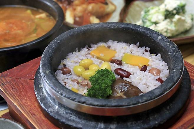 솥밥은 일반적을 생각하는 돌솥이 아닌 철솥에 밥을 짓는다. 갓 지은 밥에서는 고소한 향이 피어오르며, 콩, 흑미, 좁쌀이 들어가 식감도 풍부하다.