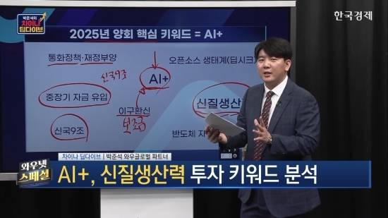 한국경제TV '와우넷 스페셜'에 출연한 박준석 전문가(와우글로벌 파트너)는 "중국 투자는 단순히 종목 선택의 문제가 아니라 정책 키워드를 이해하는 것에서 출발해야 한다"며 최근 시장을 이끄는 핵심 개념으로 'AI+'와 '신질생산력'을 짚었다.