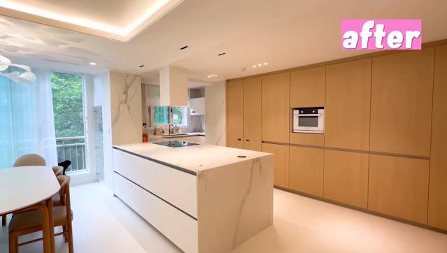 김다예는 "집들이하느라 초대해서 식사 대접해드렸는데 다들 주방이 예쁘다고 하시더라. 아주 뿌듯하다. 두 달 동안 고생했는데 전후 차이가 크다"고 만족감을 드러냈다.
