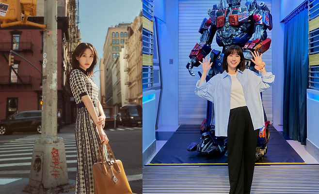 박은빈은 뉴욕 거리에서 체크 패턴 원피스로 세련된 스트리트 패션을 연출하고 있다. 상의는 작은 체크무늬, 하의는 큰 체크무늬로 구성된 투피스 스타일의 원피스를 선택해 패턴 믹스의 묘미를 보여주고 있다. 브라운 컬러의 핸드백과 매치해 전체적으로 빈티지하면서도 모던한 감성을 완성하고 있다.