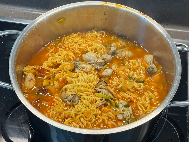 면이 알맞게 익으면 인생 굴라면 완성입니다.