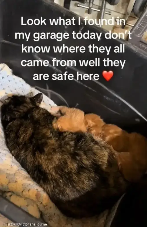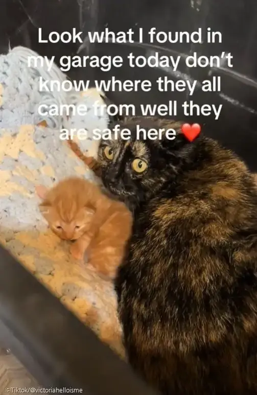 빅토리아 씨가 지난 15일 틱톡 계정(@victoriahelloisme)에 공개한 영상은 차고 안에 자리를 잡은 고양이 가족을 보여줍니다.