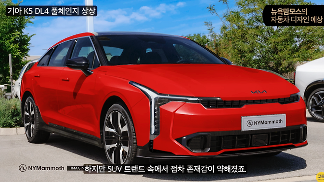 디자인 변화는 고급스럽고 역동적인 방향이다. 예상도에 따르면 전면부는 슬림한 수평형 주간주행등과 매끄러운 그릴, 측면은 K8을 닮은 와이드한 캐릭터 라인으로 정돈됐다. 후면은 현대적인 리어 램프와 에어로 실루엣이 강조되며, 전기차 느낌을 담은 디테일도 곳곳에 녹아들었다. 실제 출시된다면 쏘나타와의 재대결도 흥미로울 듯하다.
